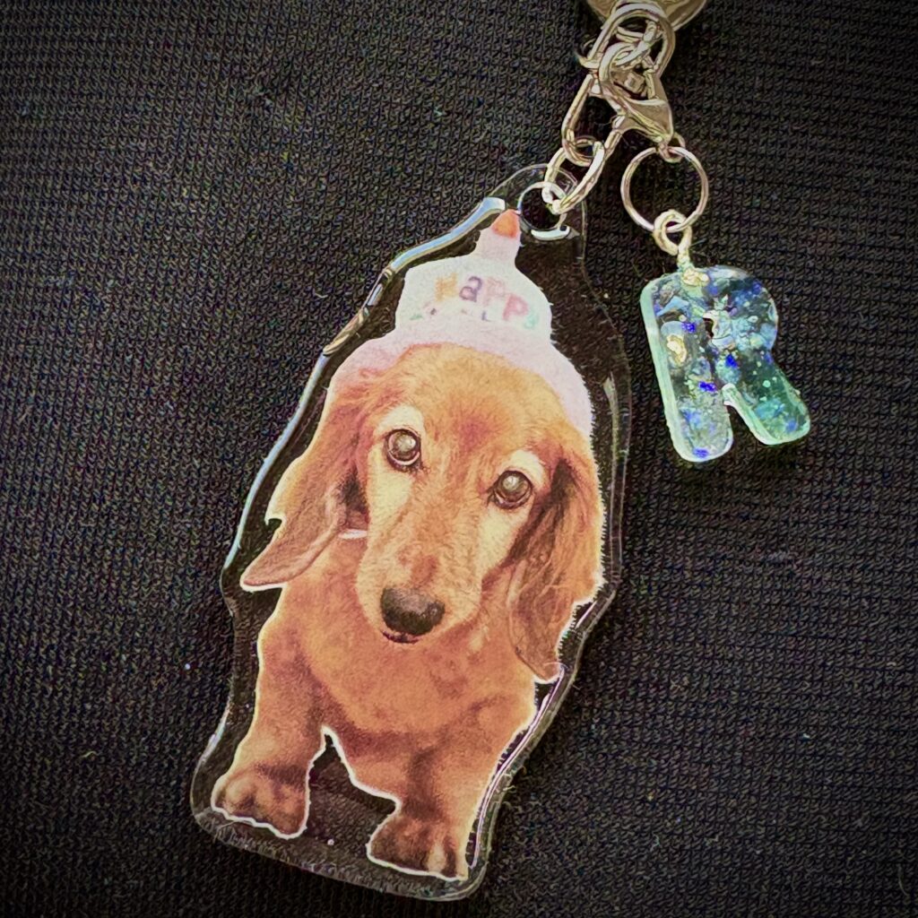 厚さ3mmのアクリル使用 表面をレジンでぷっくら 肉球型のネームチャームまたはイニシャルチャーム付き